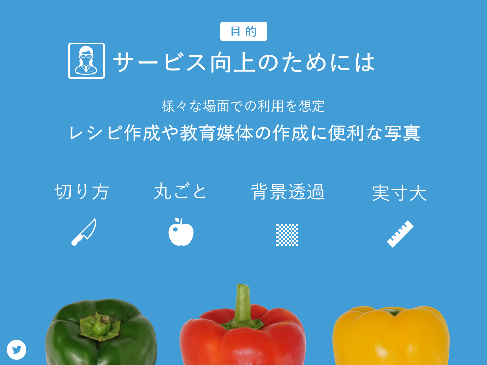 丸ごとの写真、切った状態の写真やヘタなど普段は捨ててしまうようなものもあります。また、同じ食品でもいろいろな角度から撮影した写真を掲載しています。ぜひそざい屋さんをチェックしてみてください。