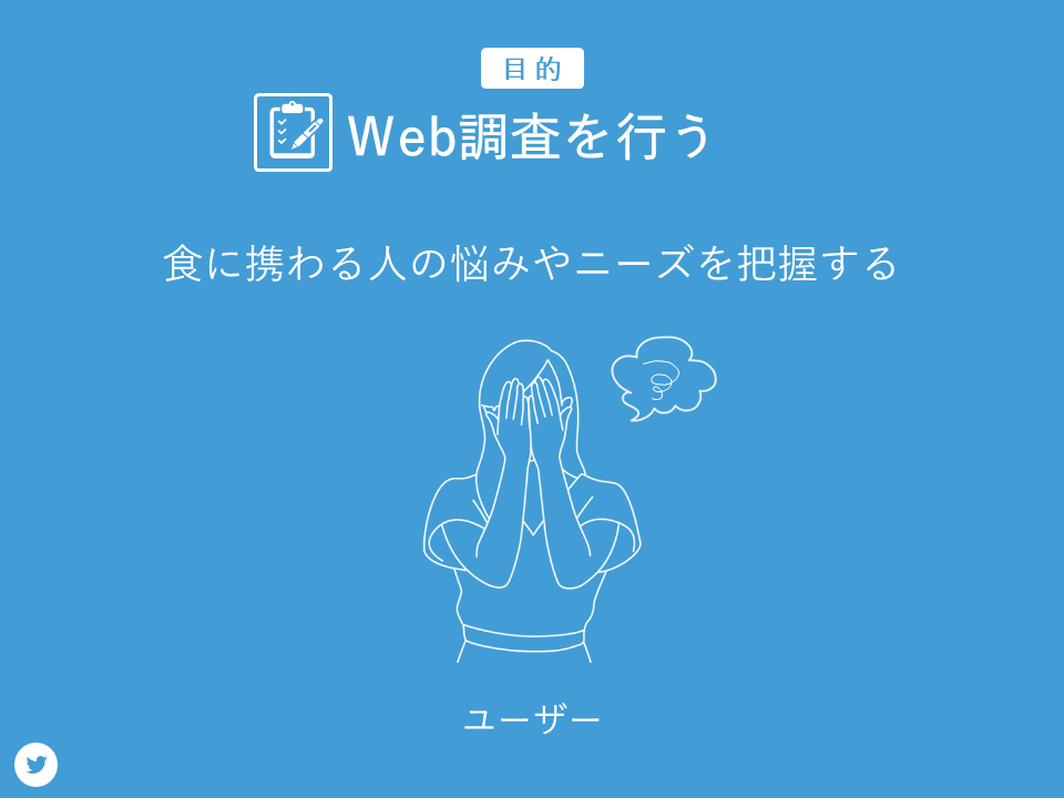 2つ目の運営目的のWeb調査行うではそざい屋さんのユーザーを対象にWeb調査を行うことで食に携わる人の悩みやニーズを把握することです。